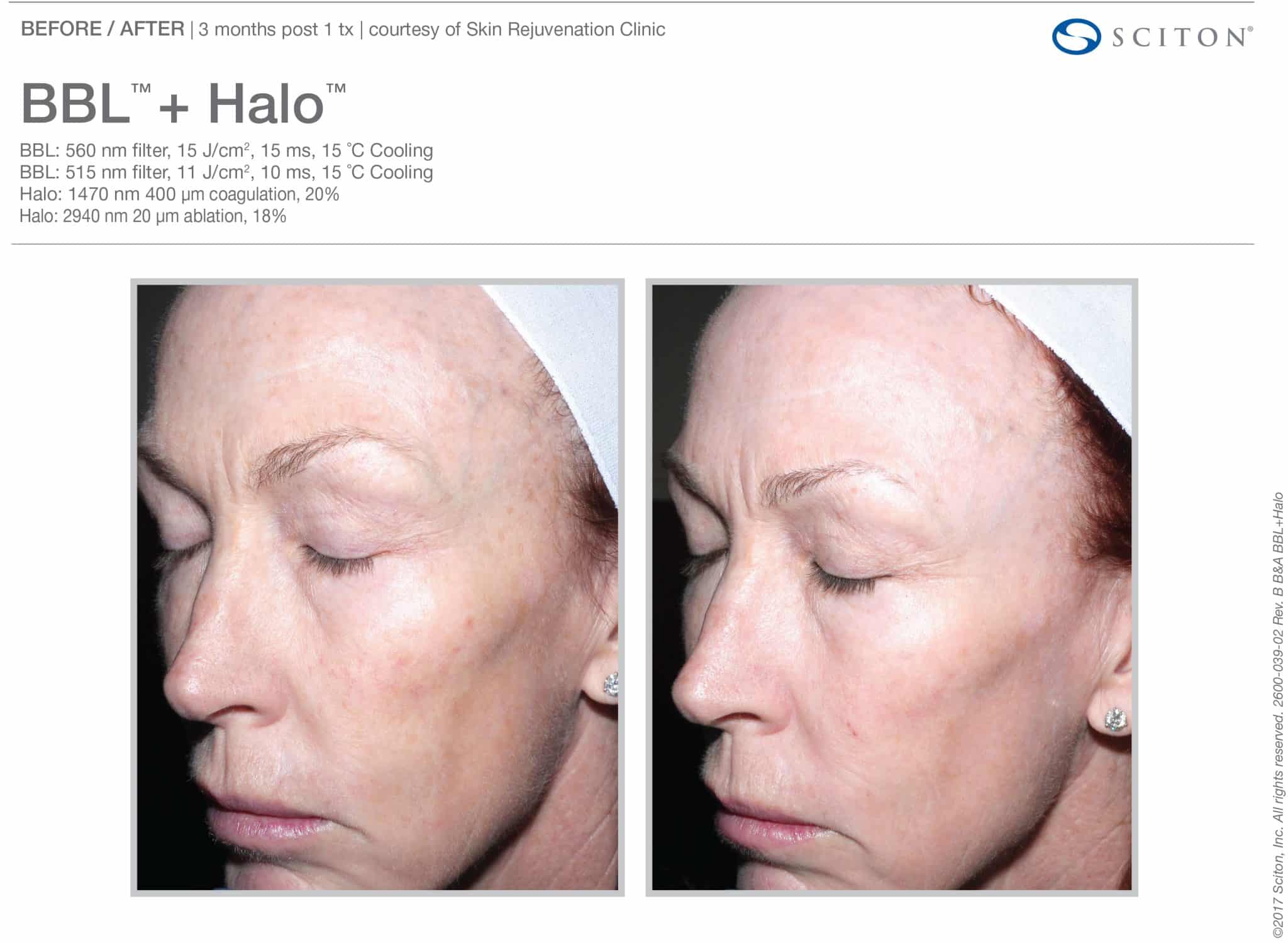 Meanwhile, non-ablative laser energy penetrates deeply into the lower layers of skin where it’s absorbed in the form of heat. This heat supercharges your production of collagen and elastin—two necessary structural proteins that tighten skin for fewer wrinkles and encourage healing in new and old scars. The Halo hybrid laser system works by combining ablative and non-ablative wavelengths into a single treatment for the comprehensive rejuvenation.